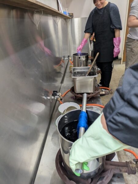 この日の染色実習は東京校、毛呂山校の生徒さん計4名が参加し、それぞれの色を染めていきました。