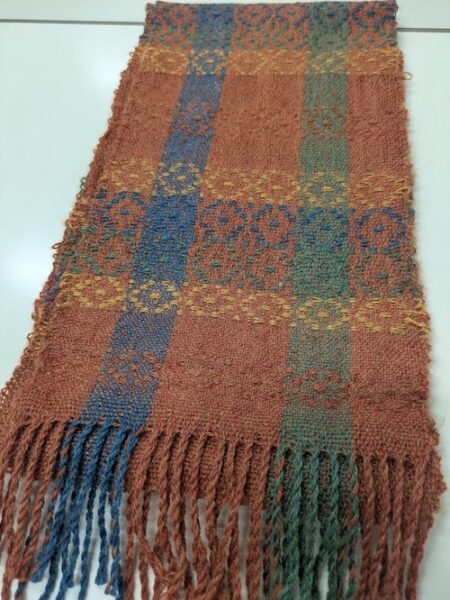 ↑こちらは高等科のカリキュラムの柄織マフラー。色の組み合わせを楽しみながら織っていました。