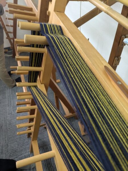 ↑届いた糸を使い、早速整経が始まりました。こちらもマフラーになる予定。