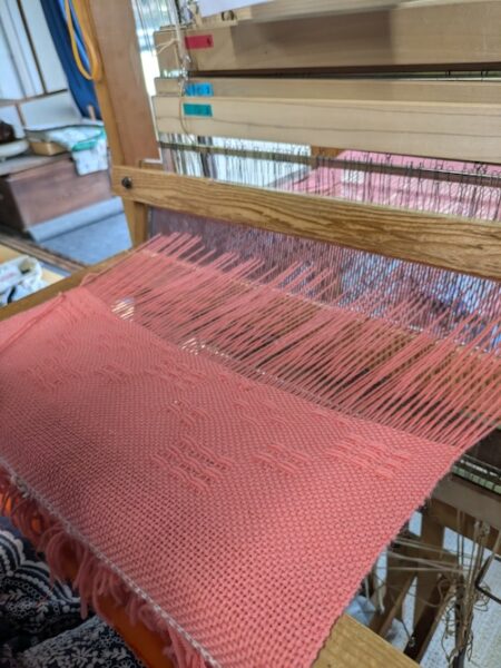 ↑吉野格子で緯糸の確認中。だんだんとスムーズに進んできました。